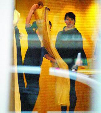 據(jù)臺灣《蘋果日報》報道,7日記者目擊,胡婷婷結束代言活動后,先和造型師劉培華到中山北路的“LANVIN”挑禮服,但待不到半小時,又到“JAMEI CHEN”服飾店,她拉著劉培華當評審團,換上1套又1套禮服,只見店員拿著白紗忙進忙出,無論是可愛燈籠裙小洋裝或性感亮片洋裝,她通通試穿拍照留念,最后更對一款典雅的希臘式長襬深V剪裁的白紗情有獨鐘,要店員拿在手里讓她仔細端詳。
