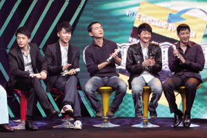 由康洪雷執(zhí)導(dǎo)、《士兵突擊》原班人馬打造的新劇《我的團(tuán)長(zhǎng)我的團(tuán)》將于3月2日在江蘇衛(wèi)視進(jìn)行全國(guó)首播。昨日,該劇在南京舉行首播式,康洪雷帶著段奕宏、邢佳棟、張國(guó)強(qiáng)、劉威葳等演員集體亮相。面對(duì)近百家媒體的追訪,康洪雷首次坦露了該劇拍攝時(shí)遭遇事故時(shí)的慘狀,還給大家揭秘道:“會(huì)看哭所有觀眾的,《我的團(tuán)》全是英雄,最后跟日本人拼得只剩下兩個(gè)人了!闭f(shuō)到動(dòng)情處,現(xiàn)場(chǎng)男演員流下了眼淚。串場(chǎng)的魔術(shù)紅人劉謙,則表演了三個(gè)小魔術(shù),輕松賺走20萬(wàn)。