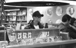 解約官司纏身的陳楚生當(dāng)天身穿黑色羽絨服,黑色帽檐拉得很低,腳穿白色休閑鞋,靜靜地站在顧客中看書并不是很顯眼。起初正在看碟的記者并沒有注意到陳楚生,直到迎面走過時(shí)才認(rèn)出他。