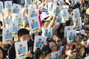 喜歡羅京的觀眾在網上自稱“菠蘿團”,“菠蘿團”用200朵白玫瑰制成的花牌和紀念冊表達自己的哀思,“主要是由羅老師的照片和菠蘿們的祝福組合而成。這個紀念冊的制作費是300多元,但制作方看我們是送給羅老師的,最后決定免費為我們制作。我們還做了一個心形花牌,由200朵白玫瑰和羅老師的照片組成。白玫瑰的花語是尊敬”,紀念冊已經送到羅京家屬手中。昨天現(xiàn)場“菠蘿”們統(tǒng)一手系黃絲帶,從凌晨5點就有人開車從天津趕到八寶山,“菠蘿”里有老人、孕婦,也有剛高考完的學生。這些天來,喜愛羅京的眾多粉絲自發(fā)在網上悼念羅京。網上獻花、上香、寫悼文者眾多。羅京生前曾在一次晚會上唱過周杰倫的《千里之外》,有“菠蘿”模仿《千里之外》為羅京寫了一首《京哥走好》——“電腦剛打開,噩耗就傳來,實在太意外;偌大中央臺,數(shù)你最有才,偏偏患上癌;工作到現(xiàn)在,將近三十載,新聞你主宰……”記者 張艷