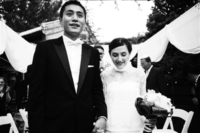 昨天的婚禮分為中式、西式兩個(gè)部分。在跟著牧師宣誓后,兩人甜蜜相擁,幸福的樣子羨煞旁人。整個(gè)婚禮氣氛浪漫,價(jià)格也不菲。據(jù)保守估計(jì),花費(fèi)超過30萬元。