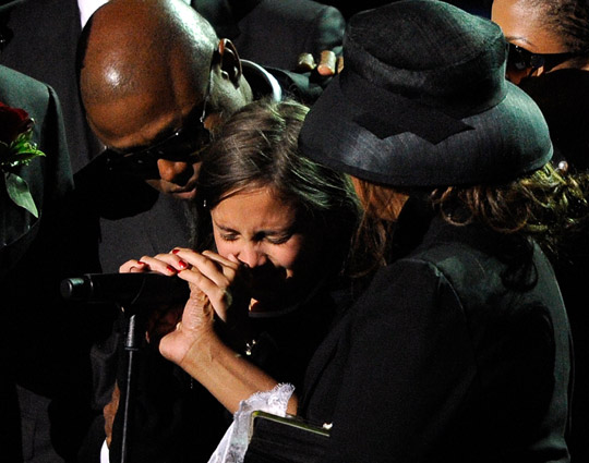 杰克遜在最后一刻上臺致詞,哥哥講到最后不能自控掩面痛哭,緊緊擁抱身邊的妹妹珍妮.杰克遜等家人,杰克遜的大女兒說:“從我出生以來他是我最好的父親,我只想說我愛你!“場面感人,催人淚下。