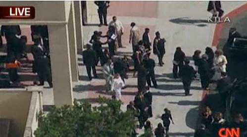 由杰克遜父母及家族成員所乘坐的20余輛黑色禮車,于當(dāng)?shù)貢r間上午8時前由洛杉磯西邊的Encino豪宅出發(fā)。