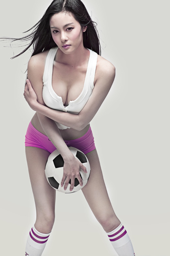 內(nèi)地女星王冕遠赴香港拍攝世界杯足球?qū)懻妫瑢懻嬷型趺釋⑿愿型昝勒宫F(xiàn),半裸真空上陣助陣世界杯,胸前風光無限,美麗身段表露無疑,王冕表示她對自己現(xiàn)在的身材很滿意。第一次拍攝如此尺度大的寫真,王冕坦言:“自己平時也很喜歡運動,騎馬等,這次拍攝世界杯題材的照片對我來說很新鮮,以前從來沒有拍過這樣的足球?qū)懻妫苍S我應(yīng)該代表的是亞洲女性含蓄的美,但我并不排斥展示自己的身體,我很喜歡這種娛樂與體育新穎的結(jié)合方式,希望辛苦的結(jié)果會給大家?guī)硪曈X上美的享受!蓖趺岢姓J自己不是一個標準的球迷,但是每一次看球,她都會“感到很興奮”。談及南非世界杯喜歡的球星,王冕表示自己是意大利卡納瓦羅的忠實粉絲。
