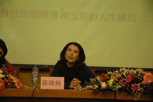 當(dāng)晚,中央財(cái)經(jīng)大學(xué)能容納500人的報(bào)告廳座無虛席,連過道上也站滿了剛剛下課、懷里還抱著書本的同學(xué)。講座過程中,陳曉楠不僅親切生動(dòng)地講述了自己的職場(chǎng)經(jīng)歷、人生體味,還首度爆料自己的人生“四宗最”,博得現(xiàn)場(chǎng)同學(xué)掌聲陣陣、笑聲連連。