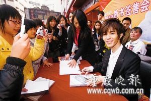 簽售開(kāi)始,氣氛更加火爆。走到簽名桌前的粉絲激動(dòng)不已,排到后面的則一臉焦急。一位粉絲貼心地告訴郭敬明“下次不要遲到了”,另一位粉絲直接向郭敬明表白“我愛(ài)你”,說(shuō)完后緊張地拍了拍胸口,舒了口氣。郭敬明很有經(jīng)驗(yàn),一點(diǎn)不驚慌,微笑著說(shuō)了聲謝謝。之后他接受記者采訪時(shí)表示:“重慶的女孩確實(shí)比較火辣!