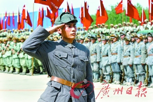 日前,《建國大業(yè)》劇組在北京南苑機(jī)場(chǎng)拍攝了全片規(guī)模最大、氣魄最足的一場(chǎng)戲——1949年3月25日,毛澤東主席在北平西苑機(jī)場(chǎng)進(jìn)行了新中國成立之前的閱兵儀式“西苑機(jī)場(chǎng)閱兵”。