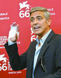 一直冷冷清清的威尼斯電影節(jié)在賽程過半時迎來了超級大明星喬治·克魯尼,頹廢了多時的電影節(jié)終于讓眾老記有了點“瘋狂”的感覺。盡管喬治·克魯尼和伊萬·麥克格雷戈主演的《以眼殺人》只是展映片,但卻搶走了所有競賽片的風頭,實在有點諷刺。平日里,參賽片發(fā)布會現(xiàn)場的座位都坐不滿,但記者們?yōu)榱艘欢每唆斈岬娘L采,紛紛提早進發(fā)布會現(xiàn)場搶位置,發(fā)布會上更有瘋狂記者現(xiàn)場脫衣向克魯尼示愛。