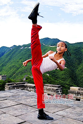 由成龍和威爾·史密斯的兒子賈登·史密斯(JadenSmith)主演的《功夫夢》(The Karate Kids)近日曝光了幾張官方劇照,畫面所見,成龍?jiān)陂L城上訓(xùn)練賈登·史密斯,小子架勢十足。該片由中影集團(tuán)、索尼·哥倫比亞和威爾·史密斯(Will Smith)旗下的Overbrook娛樂公司聯(lián)合投資拍攝,將于明年6月11日在北美公映,中國也將同步引進(jìn)。