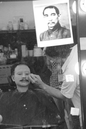 《十月圍城》開機(jī)以來,孫中山的人選一直是劇組的高度機(jī)密,化妝間只有監(jiān)制、導(dǎo)演、特技造型師和助理可以進(jìn),別的人統(tǒng)統(tǒng)都被關(guān)在外面。拍戲時,通告單上都要寫清楚演員名字,但一旦拍到孫中山的戲份,通告單上只有“孫中山”三個字。