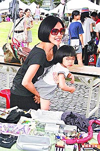 中新網(wǎng)7月27日電 小S昨天帶著3歲的許俏妞和1歲的Lily兩個女兒現(xiàn)身臺北華山創(chuàng)意園區(qū)的跳蚤市場,把自己的T恤、洋裝跟姊姊大S的小可愛全部200元左右臺幣的平價出清。