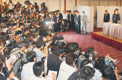 中新網(wǎng)9月18日電 酒井法子在東京千代田飯店舉行的謝罪記者會(huì),日本多家媒體都是全程直播,不少日本記者更是直言指出,她的架勢(shì)遠(yuǎn)勝過昨日上任的新首相鳩山由紀(jì)夫。