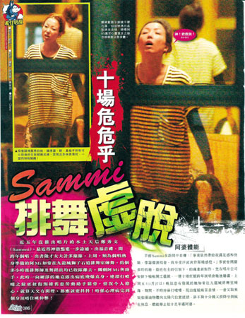 已是37歲的鄭秀文早前在訪問中表示:“事業(yè)依然帶給我滿足感和快樂,像籌備演唱會(huì),我享受汗流浹背那種感覺!鄙现苣浾呖吹揭伤苹加懈忻暗乃绯T诰琵埑桥盼枋揖毼,其間不時(shí)打噴嚏,出現(xiàn)疲憊痛苦表情,還用藥油向太陽穴位置搓揉。她跳不夠十分鐘即坐倒在沙發(fā)休息,體能嚴(yán)重不足。她還似乎扭傷頸部舊患,痛得要助手取來藥膏按摩痛處。