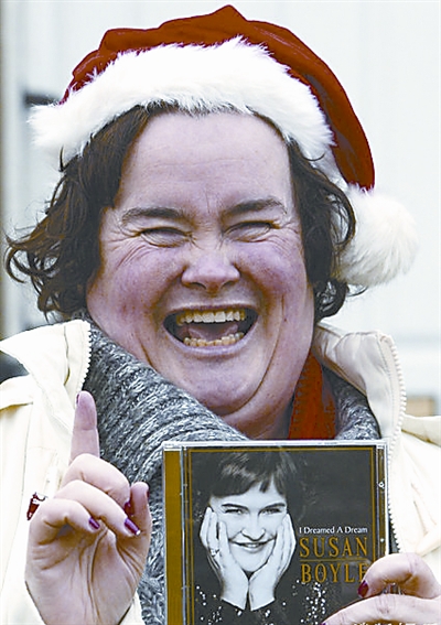 當(dāng)?shù)貢r(shí)間12月1日,蘇珊大媽在自家門(mén)前宣傳新CD,并且為粉絲簽名。她戴著紅色圣誕帽笑容可掬咧大嘴憨傻雷人,蘇珊大媽變“圣誕大嬸”造型滑稽引人笑。
