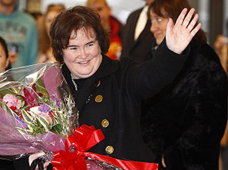中新網(wǎng)12月30日電 英國當紅明星蘇珊大媽(Susan Boyle)昨天(29日)抵達日本,她將參加日本放送協(xié)會(NHK)在除夕夜舉辦的紅白歌唱大賽。蘇珊大媽上午抵達東京成田機場,現(xiàn)身出境口時,滿臉笑容更狂向粉絲送飛吻,她已愈來愈有明星架勢。