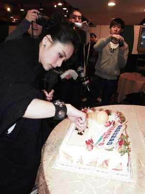 粉絲們得悉阿嬌近日忙于拍戲及籌備新專輯,特意送上寫(xiě)有祝福阿嬌歌影事業(yè)順利的蛋糕。但粉絲又得知阿嬌曾學(xué)做蛋糕,對(duì)蛋糕要求甚高,故特別設(shè)計(jì)了一個(gè)既可表達(dá)粉絲們心意,又能讓阿嬌可即場(chǎng)簽名及自由創(chuàng)作,使兩者心思合二為一的精致蛋糕。