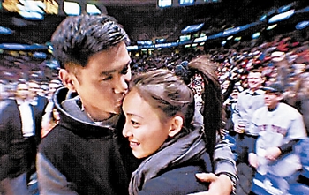 黑人說(shuō),易建聯(lián)建議他要在中場(chǎng)時(shí)間求婚,當(dāng)時(shí)場(chǎng)內(nèi)的老外球迷也充當(dāng)“助攻員”,不斷鼓掌起哄,讓范范最后點(diǎn)頭同意嫁他。他很愛(ài)籃球,求婚當(dāng)天又是籃球巨星喬丹的生日,如今又求婚成功,意義重大,加上范范應(yīng)邀在NBA球賽開(kāi)幕時(shí)演唱美國(guó)國(guó)歌,此行“成果豐碩”。