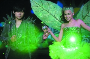 發(fā)布會現(xiàn)場采用4D光影技術(shù),化身奇幻武士的周董從升降臺升起,外套上綴滿了發(fā)出綠光的鐳射燈,首度嘗試“閃亮”登場讓他大呼過癮,還稱是出道至今最“屌”的記者會。對自己造型相當(dāng)滿意地周董,突發(fā)奇想跟現(xiàn)場記者大耍寶,自信滿滿地說:“我給大家變個(gè)魔術(shù)吧?我能控制自己身上的燈,我說亮它就亮,我說關(guān)它就關(guān)!闭f完立即演示亮燈,沒想到他都說了三次“亮燈”,身上依舊漆黑一片。周董往身旁使了個(gè)眼神,燈才瞬間亮了起來。沒看出“玄機(jī)”的記者要求他再熄燈試試,周董滿口答應(yīng)大叫“關(guān)燈”,可他沒留意到燈仍然亮個(gè)不停,反問記者“是不是很神奇?”被記者戳穿“燈還亮著”,頓感沒有面子的他扭頭沖助手大喊:“殺了你!”原來旁邊的女助手是“托兒”,手握開關(guān)鍵遙控他身上的閃燈,所謂“魔術(shù)”是兩人事先計(jì)劃好的小把戲。