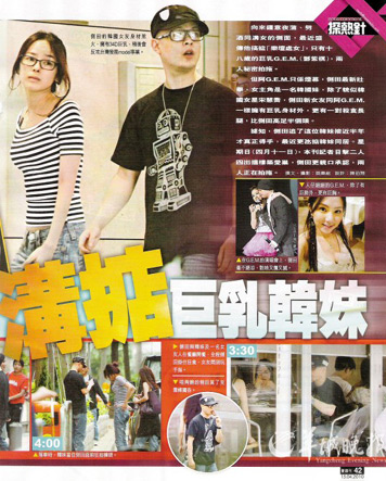 去年9月,兩人已被媒體發(fā)現(xiàn)同游迪士尼樂園。據(jù)側(cè)田身邊友人說,側(cè)田女友經(jīng)常在韓國(guó)、中國(guó)臺(tái)灣及香港三地跑,以往每次來港都住酒店。為了幫女友省錢和爭(zhēng)取見面機(jī)會(huì),側(cè)田最終說服女友和他同居。兩人被記者跟拍時(shí),其女友不斷躲避鏡頭,側(cè)田則用普通話對(duì)她說:“大方一點(diǎn),給他拍(照),我們是拍拖,沒關(guān)系的!”之后他又對(duì)記者親口承認(rèn)兩人的戀人關(guān)系:“我們是拍拖,她是韓國(guó)人,遲一點(diǎn)會(huì)簽?zāi)L毓!睋?jù)說側(cè)田的女友還打算往臺(tái)灣發(fā)展。(阿文)