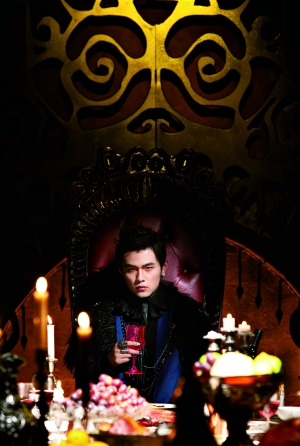 在昨日公布的預(yù)購(gòu)海報(bào)上,周杰倫化身中世紀(jì)的吸血鬼,坐在餐桌前擺出若有所思狀,臉色蒼白。造型師為周杰倫在指甲上貼上有鉚釘?shù)闹讣灼劬镞戴了特殊的隱形眼鏡,塑造出“動(dòng)物般的直立橢圓瞳孔”。周杰倫說自己在剛開始戴上這些“裝備”時(shí),覺得渾身不舒服,不過隨著整體造型的完成,他覺得自己越來越有一個(gè)真正吸血鬼的感覺了。