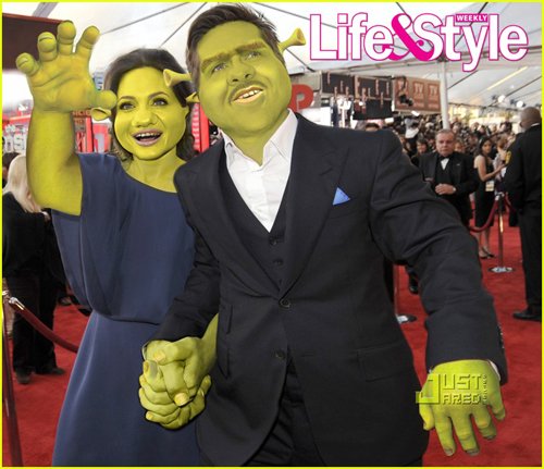 好萊塢電影大作《怪物史萊克4》將在今年5月21日上映,而一些雜志也抓住這個機會,將娛樂名人和史萊克聯系在一起吸引眼球,《Life & Style!》雜志就將布拉德·皮特夫婦、凱特·戈瑟琳以及蘇珊大媽惡搞成了《史萊克》中的形象。