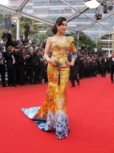 卜柯文先生介紹說:“這套禮服并不是特意為戛納準(zhǔn)備的,這其實是源自冰冰偶然的一個設(shè)計靈感,她早前跟我講了她的想法,而我也覺得范冰冰身上有著中國女明星少見的一種大氣的女王范兒,所以經(jīng)過討論決定改良清朝的龍袍在霸氣中展現(xiàn)東方美,于是就做了這么一套衣服,想找一個合適的場合展示。我們找到設(shè)計師勞倫斯·許先生請他幫我們把這個創(chuàng)意實現(xiàn),他安排了三十個工人在十五天內(nèi)連續(xù)的純手工制作,非常辛苦。所以冰冰也很感謝勞倫斯,也是因為有他的幫助才有了大家看到的這件禮服。(生活新報)