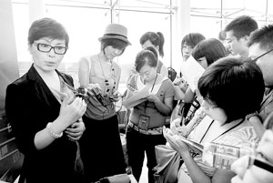 昨天,2009中國(guó)播音主持“金話筒獎(jiǎng)”新聞發(fā)布會(huì)在北京電視臺(tái)舉行。作為評(píng)委的央視新聞中心播音部副主任李瑞英無(wú)疑是活動(dòng)中最受追捧的人。