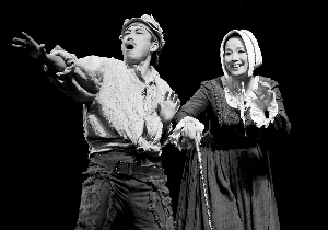 雖然在當今的話劇舞臺上活躍著不少影視明星,但前晚孫海英、呂麗萍主演的易卜生名劇《培爾金特》還是讓觀眾看到他們二人不僅有明星的光彩,更有對藝術執(zhí)著追求的信念,正是如此,話劇《培爾金特》才讓觀眾覺得彌足珍貴。孫海英顛覆了那種僵化的軍人形象,用豐富的形體語言展示了一個放蕩不羈的青年培爾,而呂麗萍在劇中一人分飾培爾金特的母親和情人兩角,她的表演展示了一個科班出身的舞臺劇演員的深厚功底。呂麗萍在演出之前曾稱:“《培爾金特》是她在中戲的畢業(yè)大戲,此次演出是圓她25年的一個夢!”