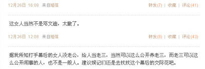 上周章子怡海報(bào)被潑墨,有媒體報(bào)道稱幕后策劃是和章子怡合作過(guò)的某女子,有網(wǎng)友猜測(cè)是傳媒大亨默多克妻子鄧文迪,一時(shí)間傳得沸沸揚(yáng)揚(yáng)。而洪晃則在微博爆料稱“這女人當(dāng)然不是鄧文迪。據(jù)我所知打手幕后的女人沒(méi)老公,給人當(dāng)老三……”
