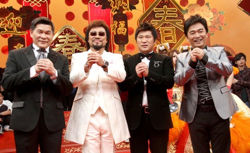 前天,4位“大腕級(jí)”的臺(tái)灣“綜藝大哥大”張菲、胡瓜、吳宗憲和澎恰恰首度同臺(tái),主持中視除夕特別節(jié)目“虎年旺旺慶團(tuán)圓”。4人進(jìn)棚錄像,大伙笑稱是“四大天王”。張菲和胡瓜師徒2人曾在去年莫拉克風(fēng)災(zāi)后,共同主持公益慈善晚會(huì),但4人同臺(tái)主持還是首例。