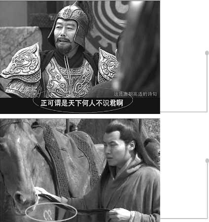 朱蘇進:有些硬傷我們虛心接受批評,比如有觀眾指出關羽的老家出現(xiàn)了表達錯誤,這個以后我們會想辦法修改。但是有些只是選擇了觀眾習慣的表達方式,比如呂布說“酒逢知己千杯少”,這是宋人的名句,我覺得很符合呂布的性格,大多數(shù)觀眾也能接受,不影響觀賞,我就用了。其實,三國時代的人怎么說話估計羅貫中也不知道,我們既然是用白話處理臺詞,就是充分考慮現(xiàn)代觀眾的接受能力,沒有太多咬文嚼字。