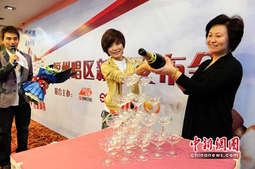中新網(wǎng)福州4月13日電(沈靜)“想唱就唱,我最閃亮”2010年快樂男聲福州唱區(qū)4月13日啟動,成為全國15個地面唱區(qū)中第一個啟動的唱區(qū),新聞發(fā)布會上,“快樂女生”許飛到場助陣。