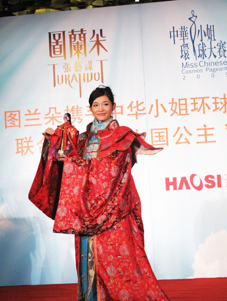 鳥巢版《圖蘭朵》是著名導(dǎo)演張藝謀率北京奧運會開幕式原班人馬打造的又一鴻篇巨制,中國公主是普契尼《圖蘭朵》中的經(jīng)典,也是這部歌劇塑造的重點人物。首演準備工作進入倒計時之際,《圖蘭朵》攜手“中華小姐環(huán)球大賽”選拔出了“中國公主”代言這部曠世著作。鳳凰衛(wèi)視主持人沈星主持了當(dāng)天的活動。