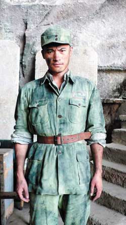 在電影版《紅日》中,著名演員楊在葆演繹的解放軍連長石東根形象深入人心。這是一個用戰(zhàn)刀挑著敵人的鋼盔,縱馬揚(yáng)鞭自在豪情的“不怕死”的鐵漢英雄。這一經(jīng)典角色對青年演員的要求頗高,既要塑造人物扎實(shí)質(zhì)樸,又要有市場號召力。最終,從眾多一線小生中,耿樂脫穎而出,與李幼斌、尤勇組成中青年《紅日》“夢幻組合”。該劇尚未拍攝,播出權(quán)就被各大電視臺一搶而空。