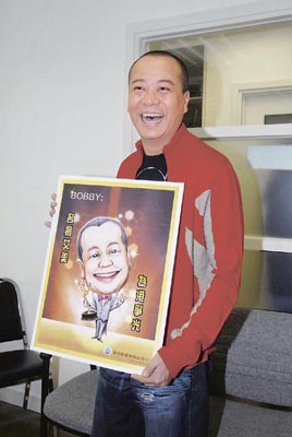 中新網11月14日電 歐陽震華(Bobby)憑劇集《賭場風云》入選“第35屆國際艾美獎”最佳男主角5強,無線為隆重其事,昨日特別安排制作資源部副總監(jiān)樂易玲陪同Bobby于電視城舉行記者會,更即場送上一幅寫上“名揚艾美·為港爭光”的Bobby得獎畫板示鼓勵。