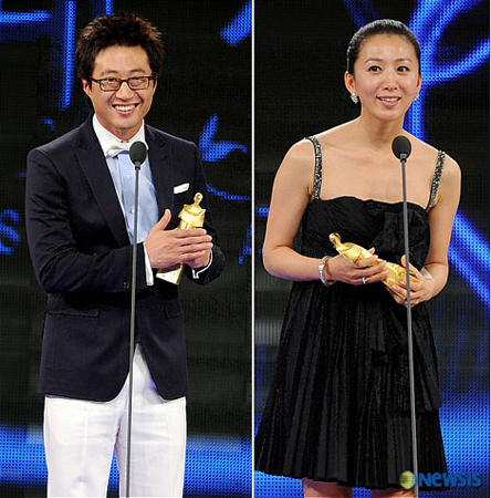 中新網(wǎng)1月2日電 據(jù)韓國NEWSIS報道,去年12月31日,在登村洞SBS公開大廳舉行的“SBS演技大獎”頒獎典禮上,分別憑借《錢的戰(zhàn)爭》和《我男人的女人》共同榮獲大獎的樸新陽、金喜愛正在發(fā)表獲獎感言。