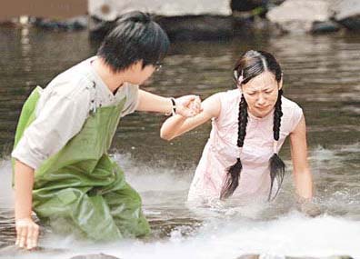 為準(zhǔn)備落水,思琦事前已用多重膠袋裹身打底,但山澗水溫特別低,加上為營(yíng)造溫泉冒煙效果,工作人員要將大量干冰拋入山澗中,猶如雪上加霜。面對(duì)一池超冰冷水,思琦落水不消兩分鐘已凍到牙關(guān)打震兼面容扭曲,未正式拍攝已忍不住淚灑當(dāng)場(chǎng),連假眼睫毛都喊到甩掉,對(duì)白更忘記得一干二凈。