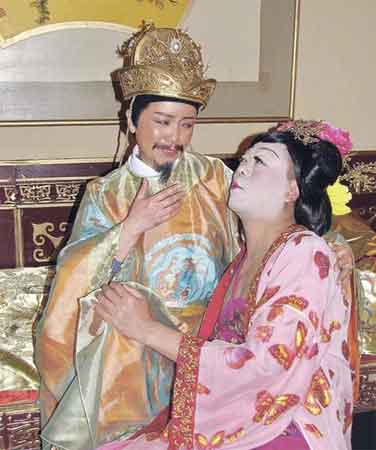 中新網(wǎng)3月20日電 歐陽(yáng)震華(Bobby)與鄧萃雯前晚為劇集《尖子攻略》開工,穿肚兜刻意露點(diǎn)的Bobby反串扮楊貴妃,雯女則粘須扮唐玄宗皇帝,調(diào)戲身邊的肥貴妃。雯女打趣地說(shuō):“上天如果賜這樣一個(gè)女人給我,我寧愿永遠(yuǎn)做女人!倍毫形、袁偉豪、羅仲謙和梁證嘉則反串扮丫環(huán)。