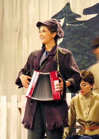 由嚴(yán)歌苓的著名小說(shuō)《一個(gè)女人的史詩(shī)》改編的同名電視劇正在安徽蕪湖熱拍,這也是趙薇和劉燁相識(shí)12年來(lái)首度演對(duì)手戲。第一次熒屏合作就演了一對(duì)一生一世的夫妻,兩人皆笑言“緣分不淺”。該劇由第五代導(dǎo)演夏鋼操刀,目前已拍攝過(guò)半。前天,記者到劇組探班時(shí)正看到久未露面的趙薇頭戴軍帽,衣衫襤褸,以流浪兒的樣子出現(xiàn)———原來(lái),她正在排練“戲中戲”前蘇聯(lián)話劇《以革命的名義》。