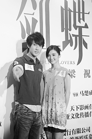 在《劍蝶》里,吳尊(左)和阿Sa(右)分別扮演梁山伯和祝英臺(tái)。記者 郭延冰 攝