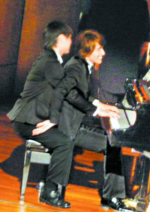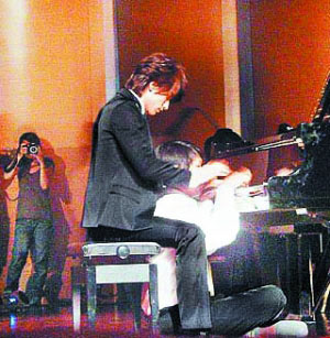周董彈琴說愛的《不能說的秘密》大紅,言承旭在新戲《星心的淚光》也化身“琴圣”,可惜他琴藝不佳,須由替身“胯下”代彈,兩人十分尷尬,頻頻笑場,變成“男體交纏”的詭異畫面,引起臺下從外地趕來捧場的師奶粉絲兼臨時演員陣陣驚呼,他拍完后也直呼有趣,“我本來就沒鋼琴基礎(chǔ),為拍演唱會表演已苦練了劇情需要的幾首曲子,但當天拍攝的曲目太難,因此讓替‘手’上場!