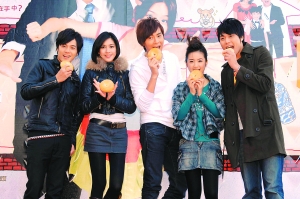 為了幫偶像劇《我的億萬(wàn)面包》搶攻收視率冠軍寶座,主演鄭元暢(小綜)及林依晨等人日前舉行影迷見(jiàn)面會(huì),玩游戲比賽只能用嘴巴看誰(shuí)先吃完食物。林依晨不顧金鐘視后的身份,在“粉絲”面前表演大口吞面包,一度還差點(diǎn)噎到。鄭元暢趕緊要林依晨把吃進(jìn)嘴里一半的面包傳給他,兩人嘴對(duì)嘴的親昵畫面,讓全場(chǎng)“粉絲”看得尖叫連連。林依晨在戲中賺錢養(yǎng)男友,現(xiàn)實(shí)中,她表示不可能做得到,“應(yīng)該是要互相照顧吧”。