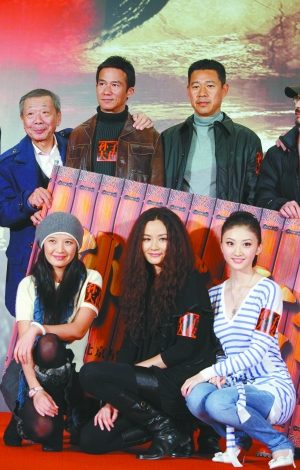 由午馬、李子雄和張豐毅(后排從左至右)主演的《孫子大傳》備受矚目,“孫武”將在片中與由李煜、瞿穎和景甜(前排從左至右)扮演的三位女性發(fā)生感情糾葛。本報(bào)記者 郭延冰 攝
