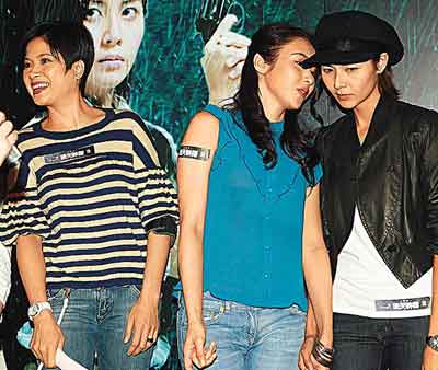 中新網(wǎng)10月17日電 鄭伊健新舊戀人蒙嘉慧和邵美琪昨日公開(kāi)碰頭,二人沒(méi)有正面交流,在臺(tái)上合照時(shí)分別站在黎姿左右,蒙嘉慧突然與黎姿姊妹情深,手拖手耳語(yǔ),但亦難掩尷尬神色,相反見(jiàn)慣風(fēng)浪的邵美琪則沒(méi)有理會(huì)蒙嘉慧,在活動(dòng)完畢后即箭步離場(chǎng)。