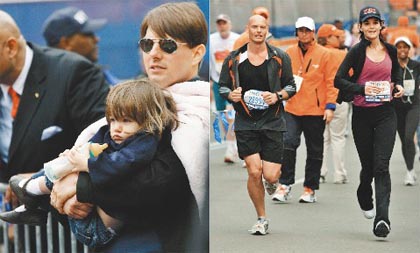 中新網(wǎng)11月6日電 據(jù)臺(tái)灣聯(lián)合報(bào)報(bào)道,昨日,紐約馬拉松路跑大賽上,出現(xiàn)一個(gè)有點(diǎn)眼熟的身影,原來(lái)正是薄施脂粉的凱蒂·荷姆絲。為了避免驚動(dòng)旁人,她以化名參加比賽,最后花了近5個(gè)半小時(shí)跑完全程,得到第58名。在計(jì)分板上,她則使用本名,而她的丈夫湯姆·克魯斯抱著小女兒蘇蕊守在終點(diǎn),等她一結(jié)束,立刻沖上去獻(xiàn)吻,一如預(yù)期再次成為鎂光燈捕捉的焦點(diǎn)。