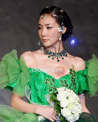 中新網(wǎng)11月27日電 據(jù)朝鮮日報報道,26日在首爾漢南洞凱悅大酒店大舞廳舉行的安德烈-金“2007聯(lián)合國兒童基金會后援之夜”特別服裝秀上,崔智友作為模特登臺走秀,展示高雅純潔的美麗。