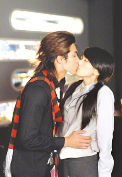 賀軍翔和Hebe的第一場(chǎng)吻戲竟是強(qiáng)吻,Hebe說(shuō):“當(dāng)時(shí)我很緊張,吻的一剎那,還真被嚇了一跳!”這場(chǎng)戲一次OK,原來(lái)賀軍翔不但愛(ài)親美女,也早就有過(guò)強(qiáng)吻經(jīng)驗(yàn),念幼兒園時(shí)喜歡一個(gè)女生,放學(xué)后一起坐娃娃車,他就去親她,結(jié)果還被老師打屁股。
