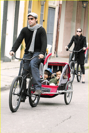布拉德·皮特早前宣布為新奧爾良第9街重建150間房屋的“Make It Right”計(jì)劃,現(xiàn)得到威爾·法瑞爾等人的支持,認(rèn)投資助興建其中一間房間。心情大好的布拉德·皮特和嬌妻安吉麗娜·朱莉帶孩子們郊游,當(dāng)起了“人力車(chē)夫”。