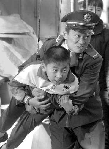 圖文:王寶強(qiáng)化身"消防員" 赴廣州鬧市"救火"