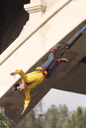 組圖:金·凱瑞拍冒險鏡頭 46米高空橋躍下